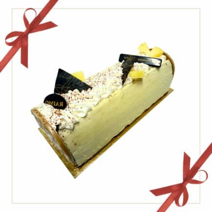 Glace au caramel beurre salé associée à un sorbet ananas acidulé, sur une fine génoise maison. Une alliance sucrée-salée aux accents exotiques qui célèbre les saveurs des îles.